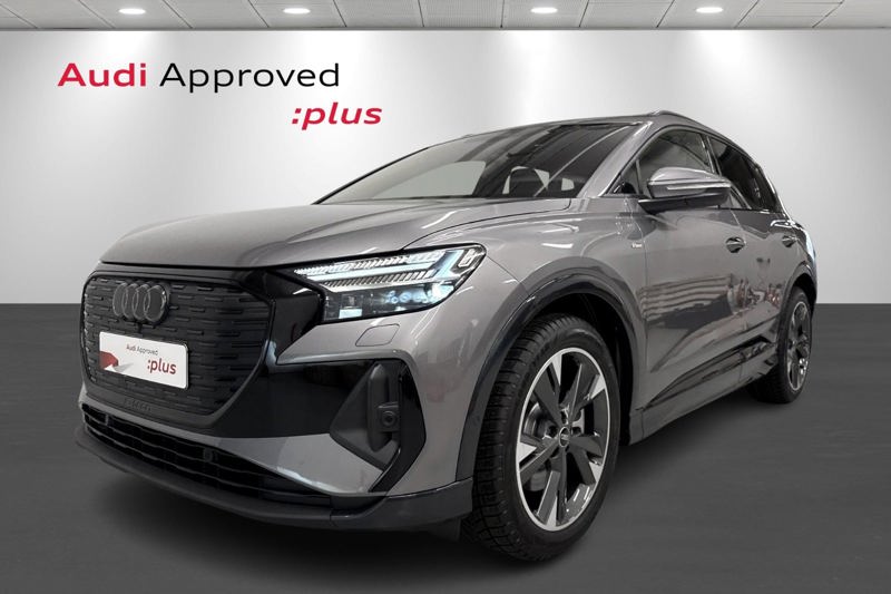 Ekstraudstyr Oplev Audi Q4 e-tron Edition S-line – en elektrisk SUV i særklasse med panoramaglassoltag, der åbner kabinen op for lys og luft. Udstyret med MMI Navigation pro og Augmented Reality Head-up Display får du banebrydende teknologi lige for øjnene. Audi Matrix-LED-forlygter sikrer et skarpt og sikkert udsyn, mens den sorte optikpakke giver bilen et markant, sporty udtryk. Innovation, komfort og design samlet i én eksklusiv elbil.