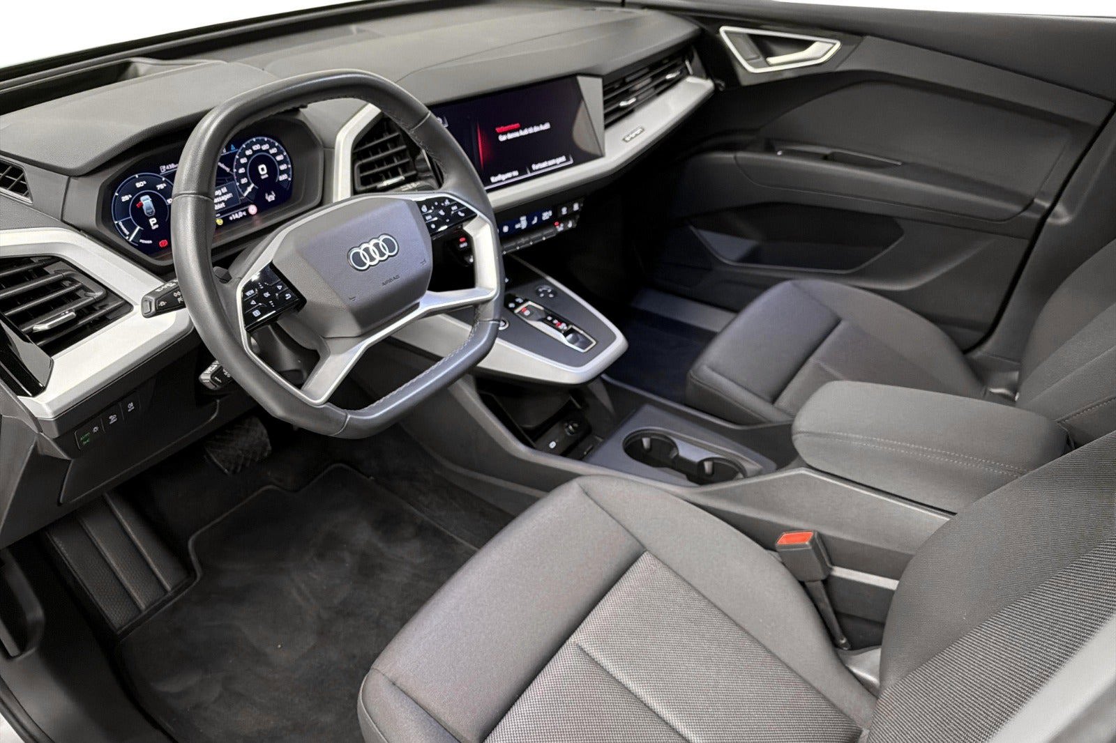 Audi Q4 e-tron Progress – en fuldelektrisk SUV, der kombinerer komfort, stil og funktionalitet. De avancerede Matrix LED forlygter giver optimalt lys og øget sikkerhed, mens varme i rattet sørger for ekstra komfort på kolde dage. Med MMI Navigation pro og Augmented Reality Head-up Display får du topmoderne infotainment, hvor navigation og vigtig køreinformation projiceres direkte i dit synsfelt. Tonede ruder giver et eksklusivt look og øget afskærmning, og det svingbare anhængertræk gør bilen ekstra praktisk i hverdagen, når der er behov for at medbringe trailer, cykler eller andet udstyr.