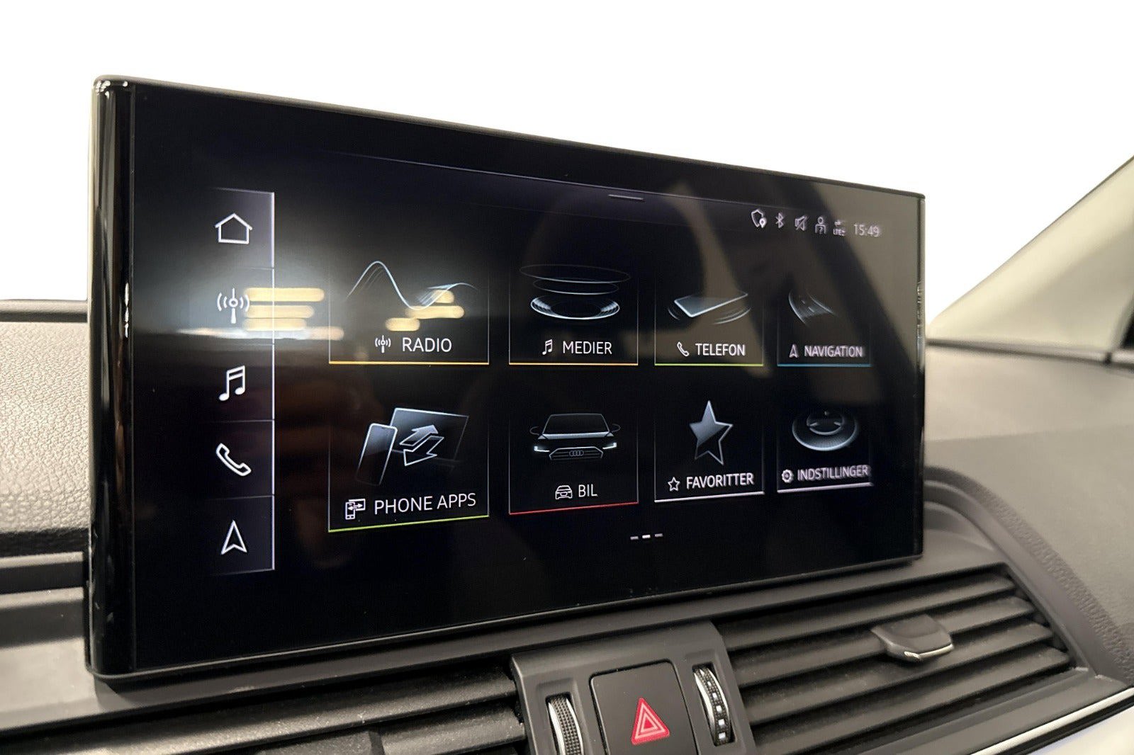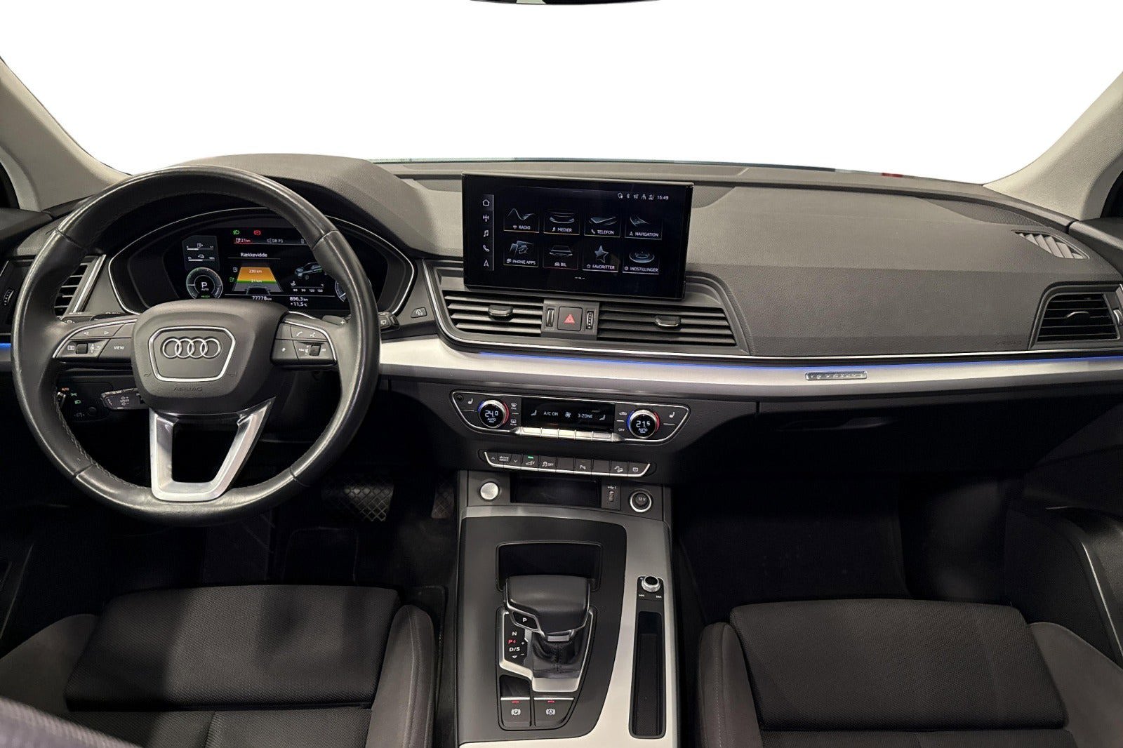 Udvalgt standardudstyr i Q5: * Audi assistentpakke (Adaptiv fartpilot & Aktiv lane assist) * Fuld LED for og baglyger lygter med fjernlysassistent * Komfortklimaanlæg 3 zoner * Parkeringsklimafunktion * Parkeringshjælp plus (Sensor for og bag) * Elektrisk åbning og lukning af bagklap * Audi smartphone interface (Apple CarPlay & Android Auto) * Sportssæder foran * Sædevarme foran * Audi connect Nødopkald & Service inklusive bilstyring * Audi drive select * Audi phone box light * Automatisk nedblændeligt bakspejl * El-justerbar lændestøtte 4 vejs * Højglanspakke blanke rudelister og tagræling * Isofixbeslag og Top Tether på bagsædet * DAB+ radio |