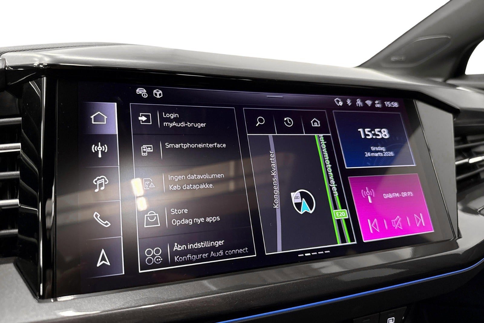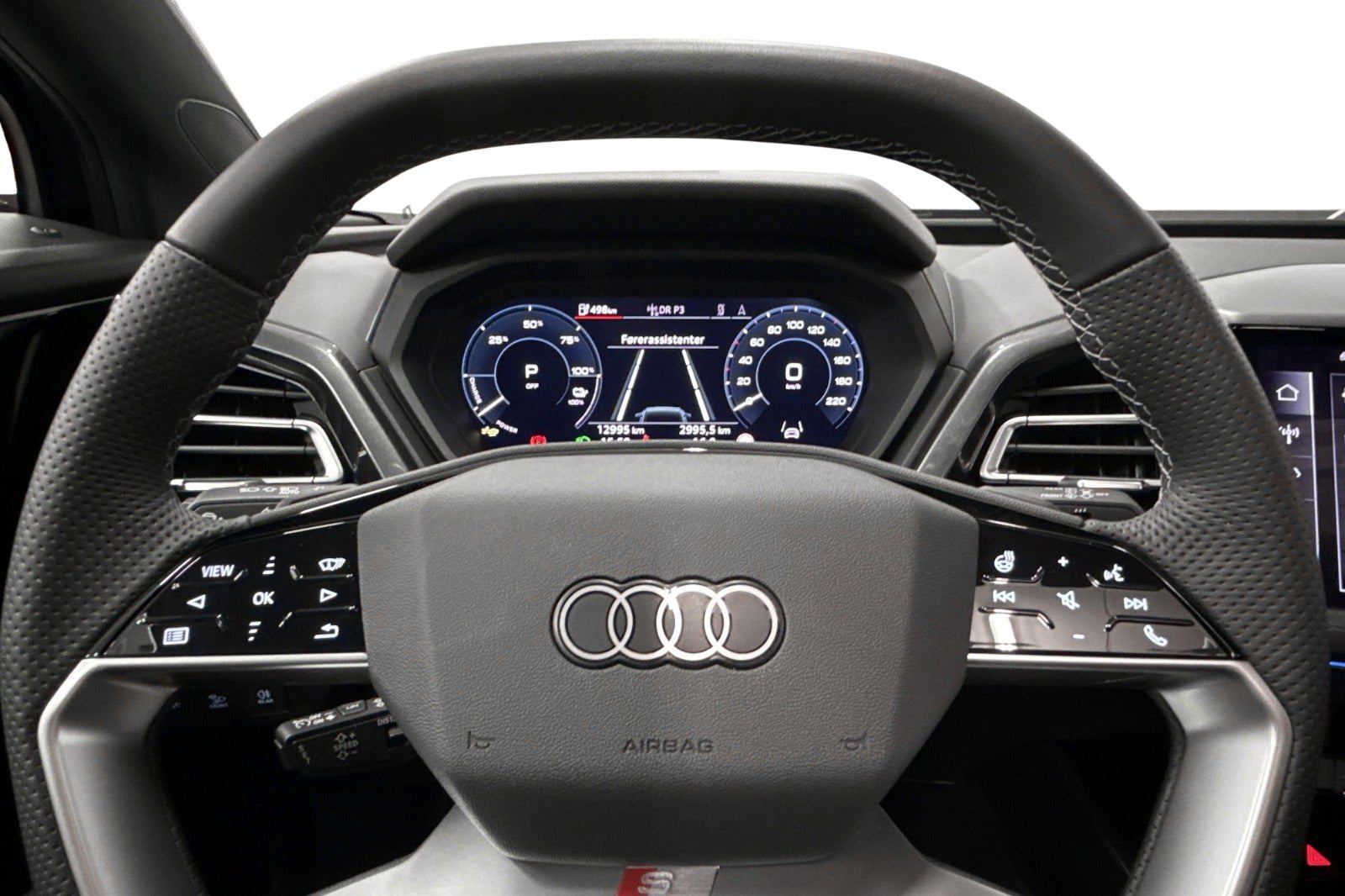 * Udvalgt standardudstyr * Dansk bil fra ny * Varmepumpe * MMI Navigation pro med Augmented Reality Head-up Display * Adaptiv fartpilot * Audi Smartphone Interface med trådløs Apple CarPlay * Matrix LED forlygter * Vognbaneskiftadvarsel inklusive udstigningsadvarsel og assistent til registrering af tværgående trafik bagved * Forreste dørruder med akustikglas * S line * S line-interiør med sportssæder i sort stof-kunstlæder-kombination * Parkeringssensor (for) * Parkeringssensor (bag) * Omgivelseskamera * Elektrisk bagklap * Komfortnøgle * Climatronic 3 zone klimaanlæg * Multifunktionslæderrat med varme * Forrude i klimakomfort- og akustikglas trådløs elopvarmning * Sonos Soundsystem * Elektrisk børnesikring * Ambientelyspakke plus * Kamerabaseret vejskilteassistent * Ambientelyspakke plus * Digital cockpit * Audi Drive Select * Højdejusterbare forsæder * Udvendig temperatur måler * Regnsensor * Sædevarme * 4x el-ruder * Dæktryksmåler * Elektrisk parkeringsbremse * Træthedsregistrering * DAB radio * Musikstreaming via bluetooth * Armlæn * Isofix på passagersæder og bagsæde * Bagagerumsdækken * Kopholder * Splitbagsæde * Automatisk lys * Vognbaneassistent * Automatisk nødbremsesystem