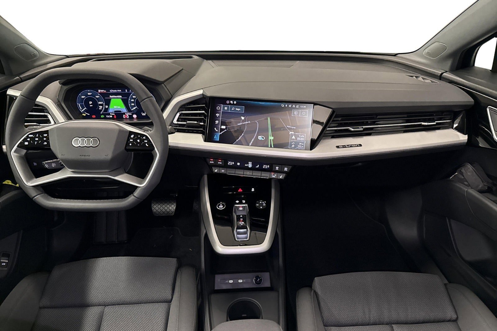 Ekstraudstyr Oplev Audi Q4 e-tron Edition S-line – en elektrisk SUV i særklasse med panoramaglassoltag, der åbner kabinen op for lys og luft. Udstyret med MMI Navigation pro og Augmented Reality Head-up Display får du banebrydende teknologi lige for øjnene. Audi Matrix-LED-forlygter sikrer et skarpt og sikkert udsyn, mens den sorte optikpakke giver bilen et markant, sporty udtryk. Innovation, komfort og design samlet i én eksklusiv elbil.