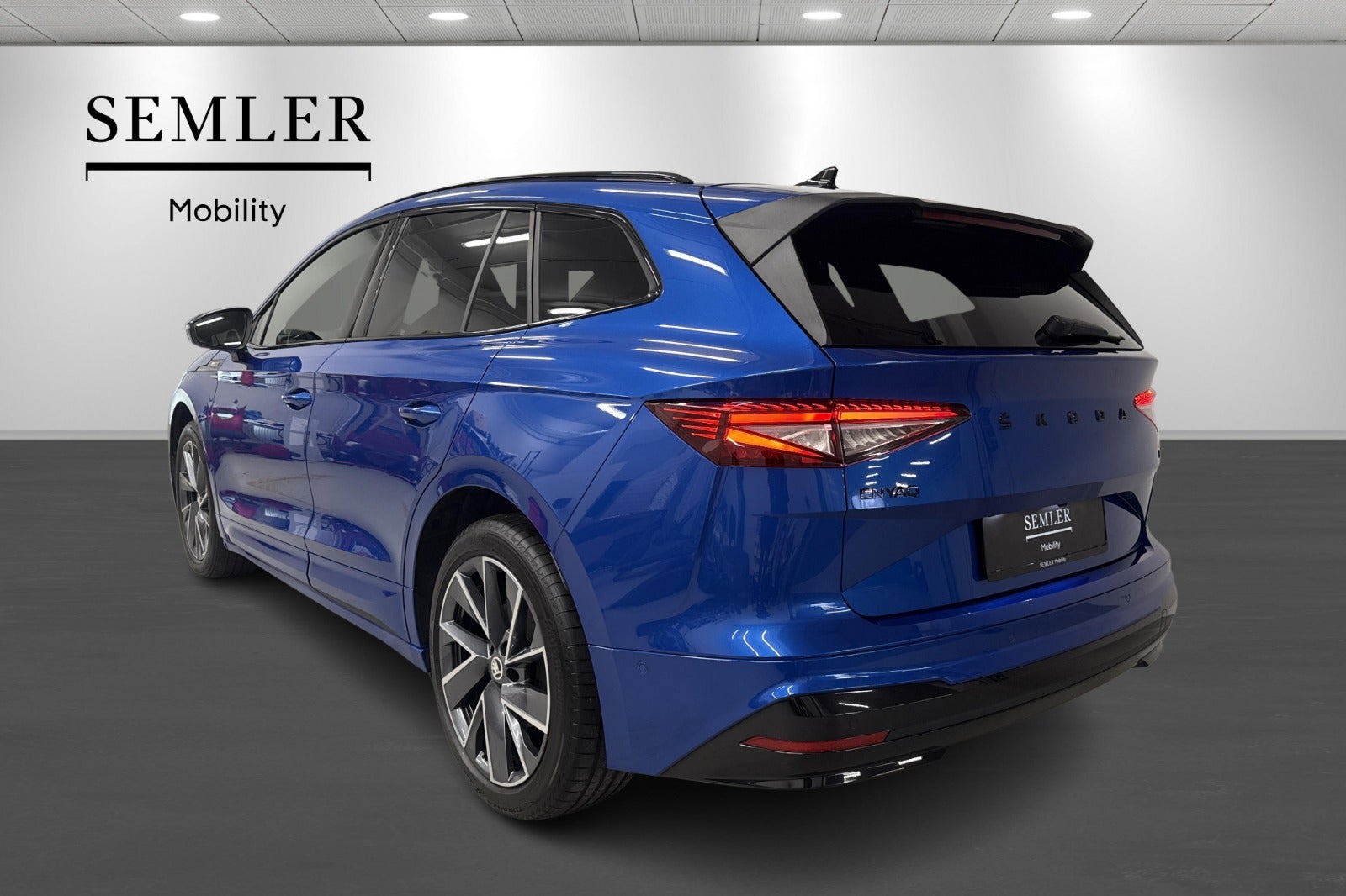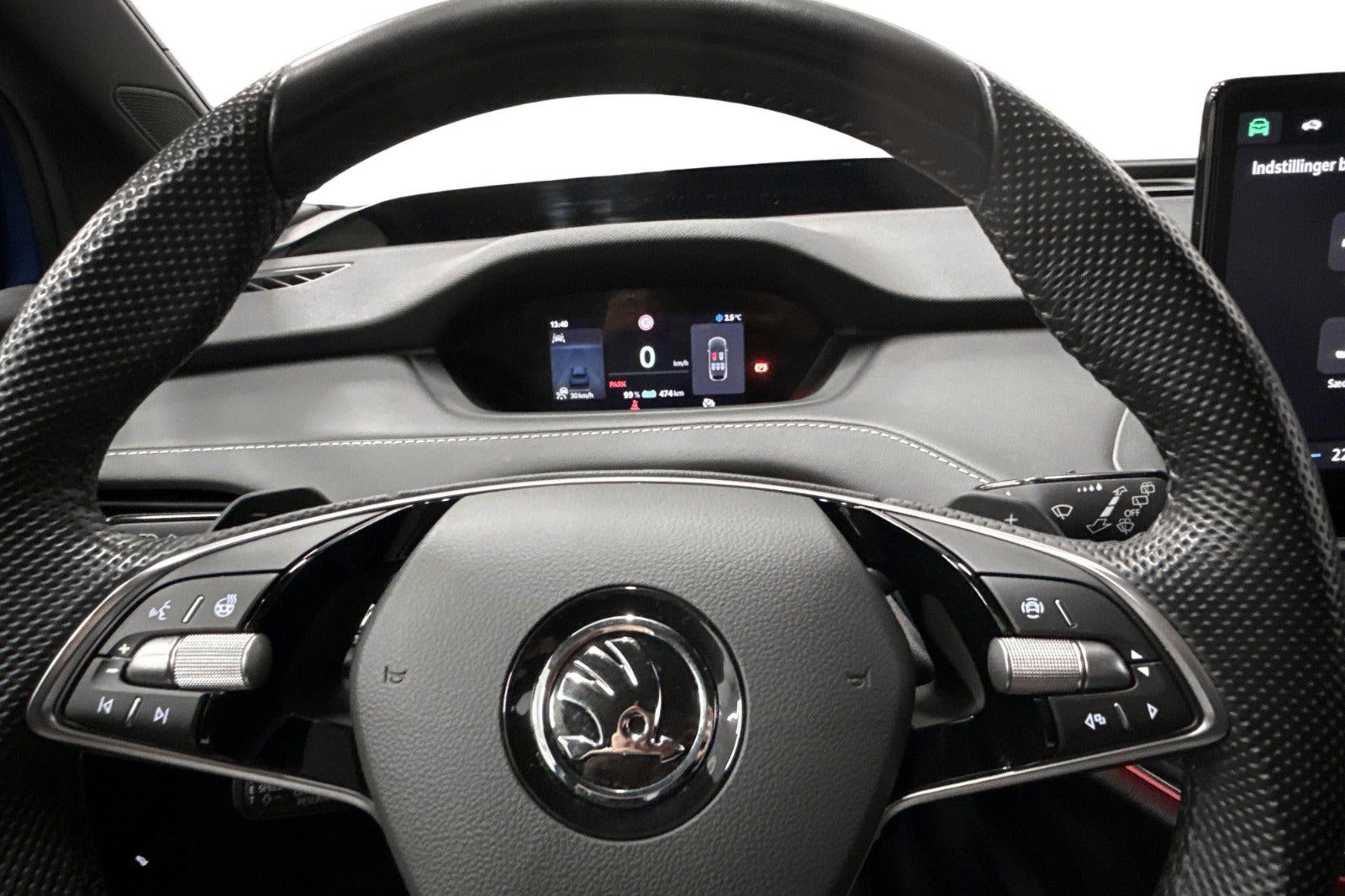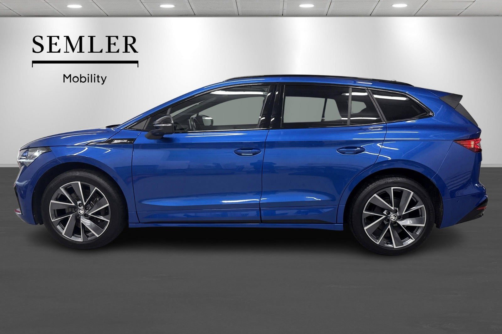 Oplev Škoda Enyaq 85 Sportline, en rummelig og dynamisk el-SUV, der kombinerer sportsligt design med høj komfort og avanceret teknologi. Den kraftfulde elektriske drivlinje giver en glidende og støjsvag køreoplevelse, mens Sportline-detaljerne understreger bilens dynamiske udtryk. Denne Enyaq er udstyret med Head-Up Display, som projicerer de vigtigste kørselsinformationer direkte i forruden, så du kan holde fokus på vejen og køre mere trygt og afslappet. Varme i rattet sørger for ekstra komfort på kolde dage, hvor rattet hurtigt bliver behageligt varmt. Med bakkamera bliver parkering og manøvrering i snævre områder lettere og mere overskueligt, så du nemt kan undgå forhindringer. Den elektriske bagklap gør hverdagen mere praktisk, så du kan åbne og lukke bagklappen med et tryk på en knap – ideelt når du har hænderne fulde. Anhængertrækket gør bilen endnu mere alsidig med mulighed for at trække trailer, cykelholder eller lille camper, perfekt til både ferie, fritid og praktiske opgaver. Enyaq 85 Sportline byder desuden på en lækker og velindrettet kabine med god plads til hele familien, højt komfortniveau og lave driftsomkostninger takket være den elektriske drivlinje. Kort sagt: En komplet el-SUV til dig, der vil have sportsligt design, praktisk anvendelighed og moderne komfort samlet i én bil.