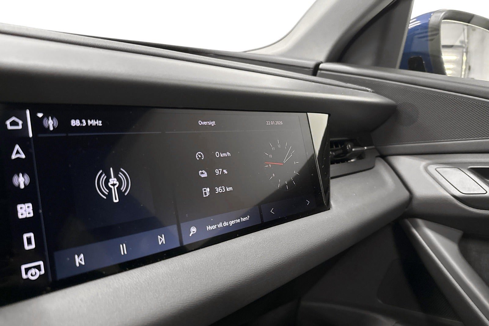 * Udvalgt udstyr * Dansk bil fra ny * Memoryfunktion for førersædet og sidespejlene * Forsæder med elektrisk indstilling * Interiør med sportssæder i sort stof * Audi Matrix LED forlygter med digitale lyssignaturer - Vognbaneafvigelsesadvarsel inkl. nødsituationsassistent * MMI navigation * MMI-passagerdisplay * Omgivelseskamera * Adaptiv fartpilot * Parkeringsassistent Plus * Komfortnøgle * Elektrisk bagklap * Audi Smartphone Interface * Digitalnøgle (til iOS/android) * Sædevarme foran og bagi * Multifunktionslæder med ratvarme * 3 zoners klimaanlæg * Armlæn * Kopholder * Skiltegenkendelse * DAB+ radio * Elektrisk ladeklap * Sidespejle med elektrisk indstilling varme og indklapning automatisk afblænding i begge sider * Omgivelseskamera * Adaptiv fartpilot * Parkeringsassistent Plus * Komfortnøgle * Digitalnøgle * Sædevarme foran og bagi * Elektrisk ladeklap * AC ladetilslutning på begge sider af bil * Akustiske sideruder foran * Sideairbags bagi * Proaktiv passagerbeskyttelse til front side og hæk * S-sportsundervogn * E-tron sportslyd (kan frakobles via Audi Drive Select) * Holdeassistent |